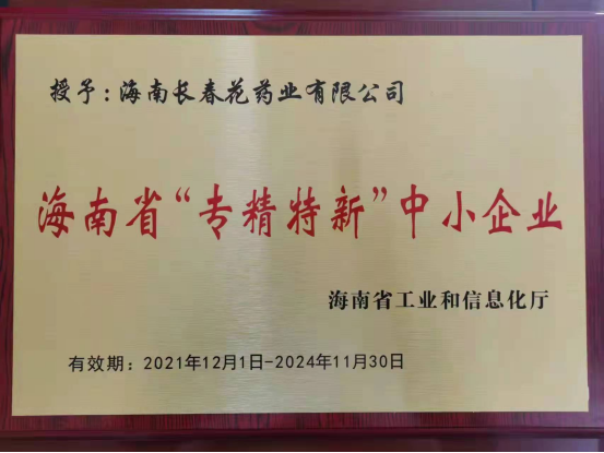 熱烈祝賀海南長(zhǎng)春花藥業(yè)有限公司成為2021年海南省“專(zhuān)精特新”中小企業(yè)